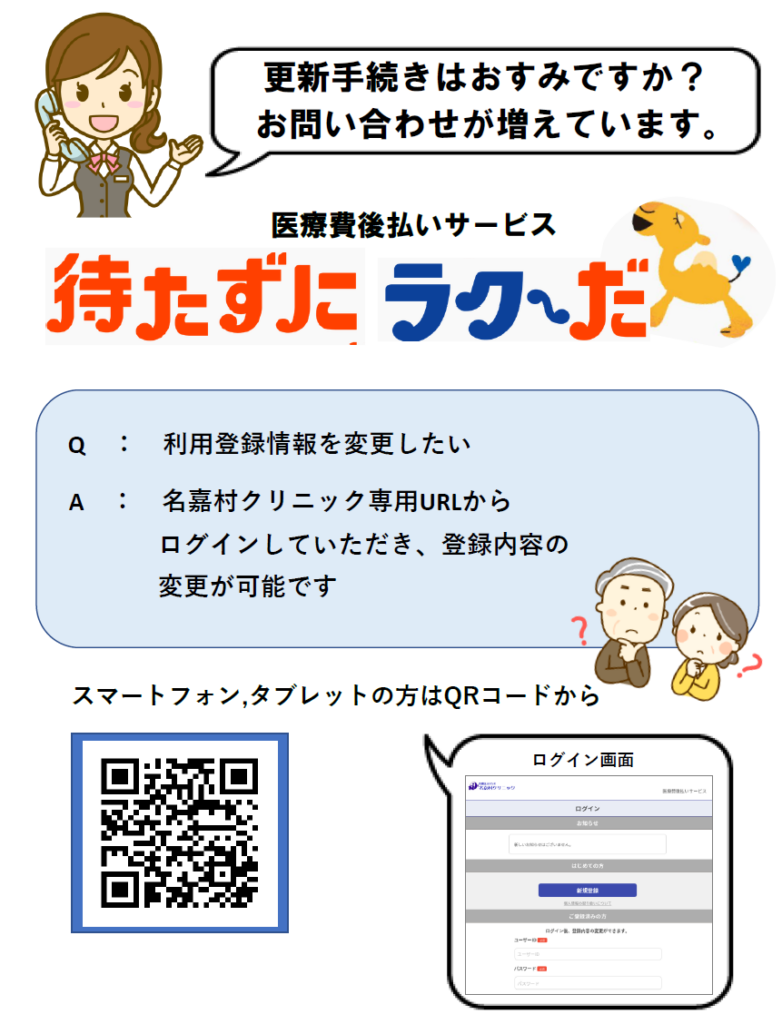 クレジットカードの有効期限更新などの手続きの際に、ログインの仕方がわからないとお問い合わせが増えてきました。更新のQRコードを下記に記載しております。QRコードを読み込んで頂き、登録修正を行って下さい。