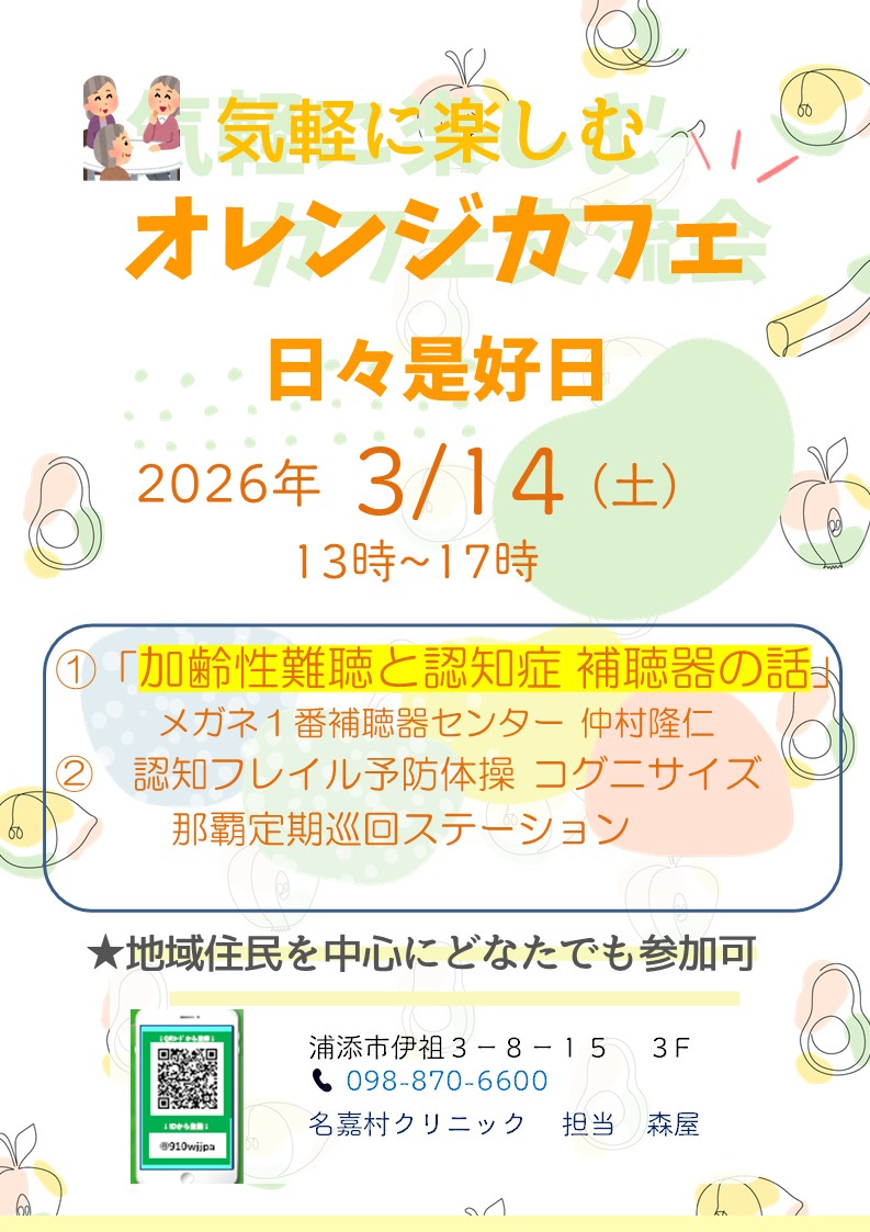 オレンジカフェ開催 2026/3/14(土)