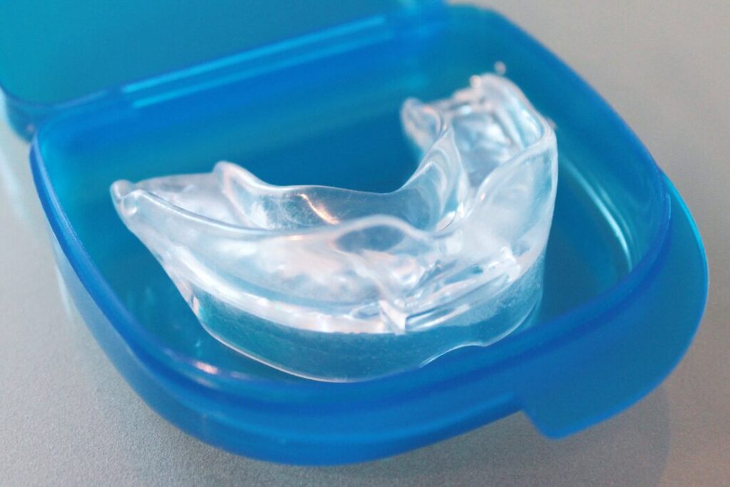 睡眠時にマウスピースを装着することで、下顎を前に出し空気の通り道を開いた状態にします。